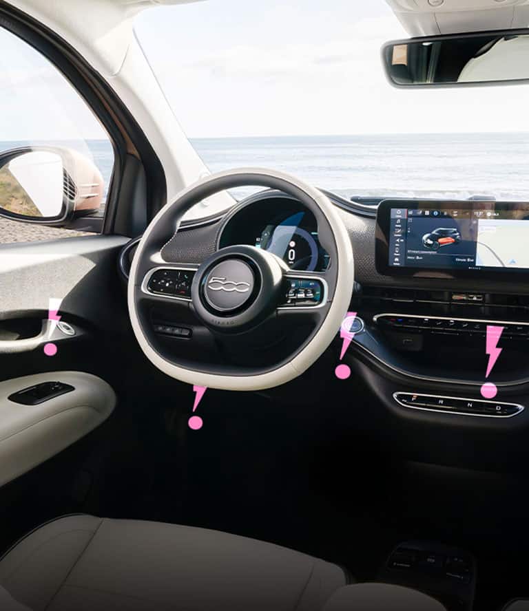La gestión de carril activa se incluye de forma estándar en el FIAT® Inspired By Beautyy el control de velocidad adaptable, que ofrece conducción semiautónoma de nivel 2, siempre con el conductor atento. Funciones de seguridad y protección como asistencia para estacionar en reversa, hacia adelante o de costado ParkSense® con vista de drony detección de punto ciego y ruta transversalofrecen mayor tranquilidad, al tiempo que un espejo retrovisor electrocrómico con atenuación automática y espejos exteriores con calefacción eléctrica se oscurecen según la intensidad de luz que reciben. Ahora tu vehículo es tu propio asistente personal.